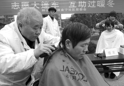 前天上午,钟公庙街道金宁社区组织了10多名有一技之长的社区志愿者,举行“志愿大篷车 互助过暖冬”便民服务活动。志愿者们以免费理发、家电维修、育婴咨询、幼儿咨询、写春联等方式,为居民们送去了温暖和节日的祝福。