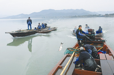 这是东钱湖小鱼种的生态现状,草鱼、青鱼、鲢鱼、鳊鱼、鲤鱼等大鱼的生态也不容乐观。在马山村网基,前几年围捕进来的鱼有很多品种,而今年只有鲢鱼,而且个头越来越小。东钱湖被称之为宁波的淡水鱼仓,“殷湾渔火”早已成为一种传说,而冬捕的渔歌能否依旧吟唱,看来任重而道远。